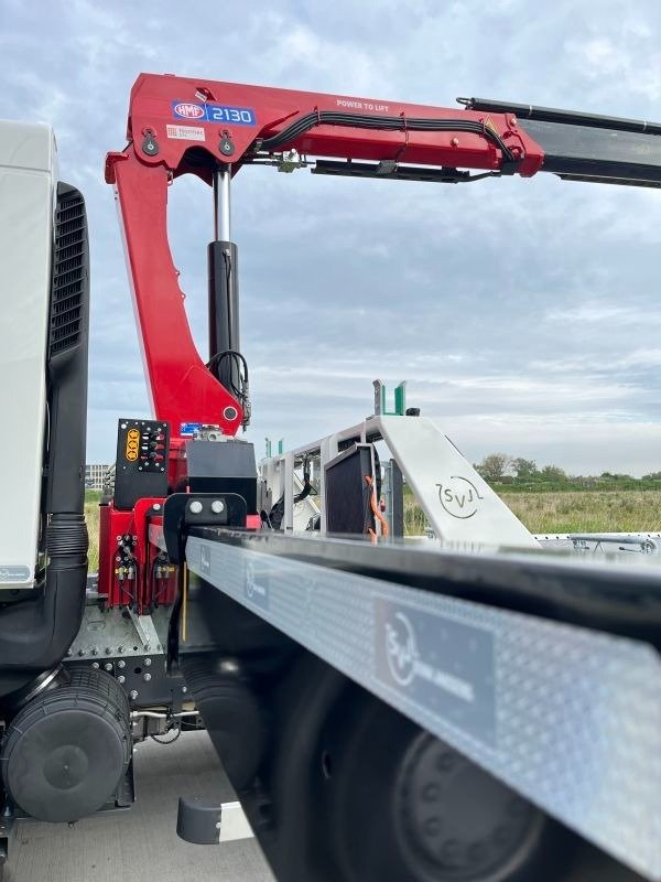 Schuifplateau 5,5 T met dubbel uitschuifbaar brilsysteem 6 T/m en HMF 2320K6-RCS kraan